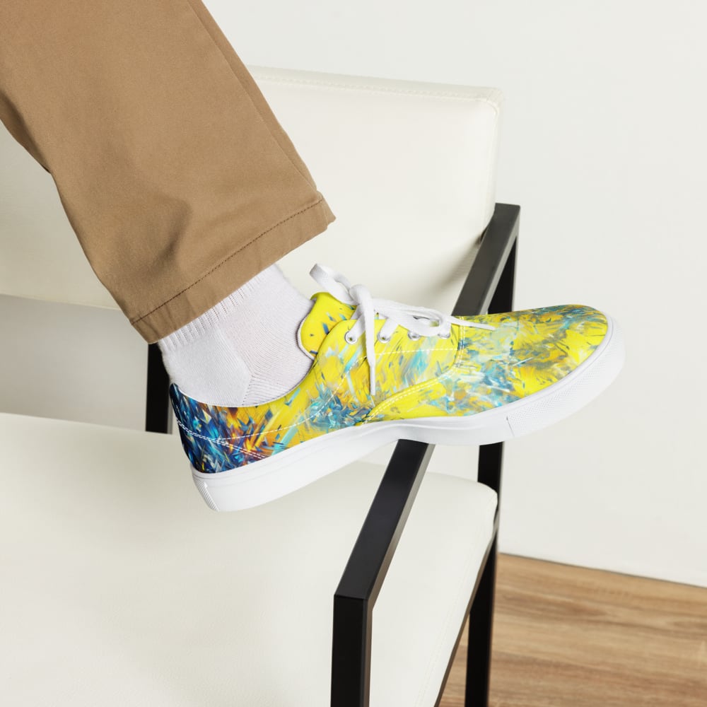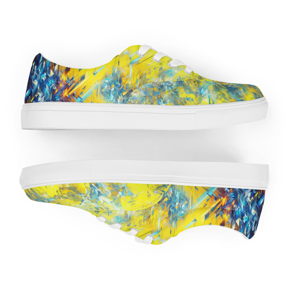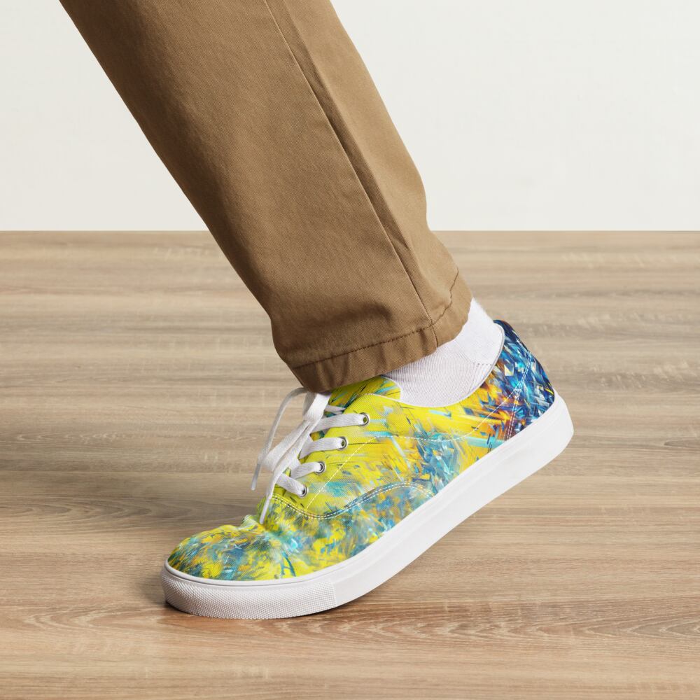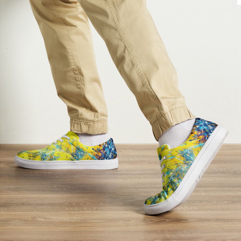 ゲームのプレイ中に突如現れるバグ画面。その混沌とした美しさを足元から放つこのシューズは、革新的なスタイルを求めるあなたにぴったり。快適な履き心地のキャンバス地には、ビビッドなイエローとブルーが交錯し、インパクトのある外観を実現しました。