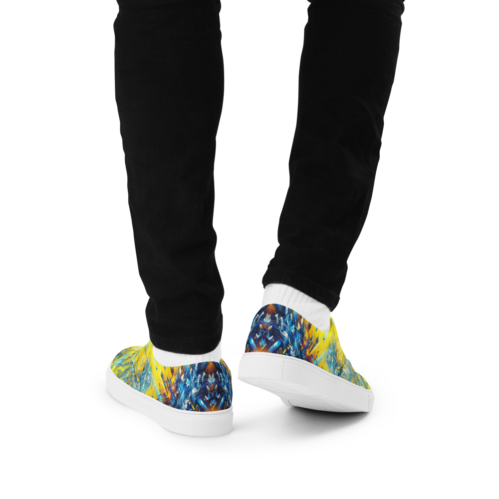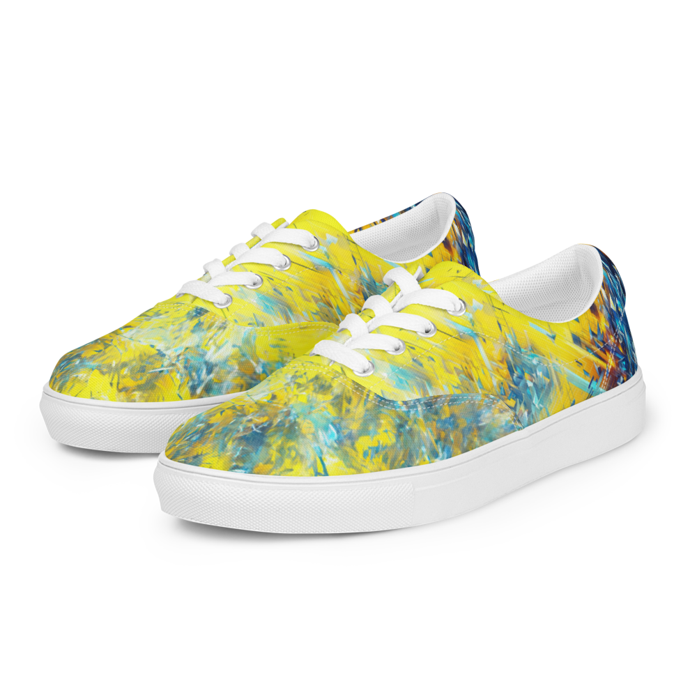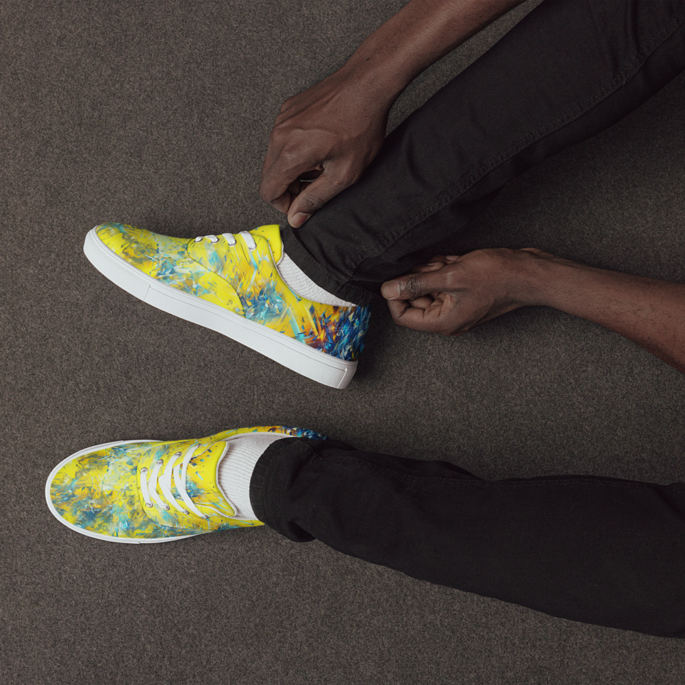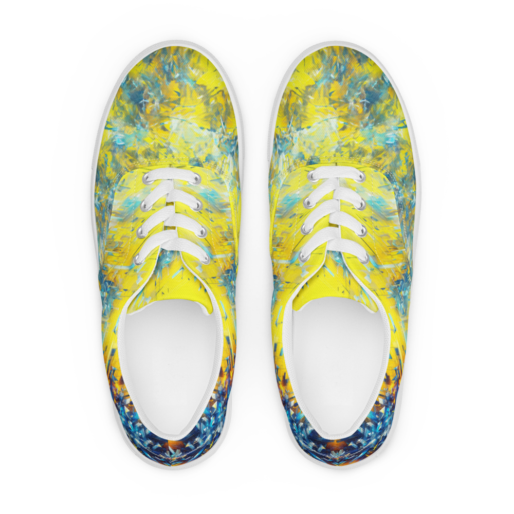 ゲームのプレイ中に突如現れるバグ画面。その混沌とした美しさを足元から放つこのシューズは、革新的なスタイルを求めるあなたにぴったり。快適な履き心地のキャンバス地には、ビビッドなイエローとブルーが交錯し、インパクトのある外観を実現しました。