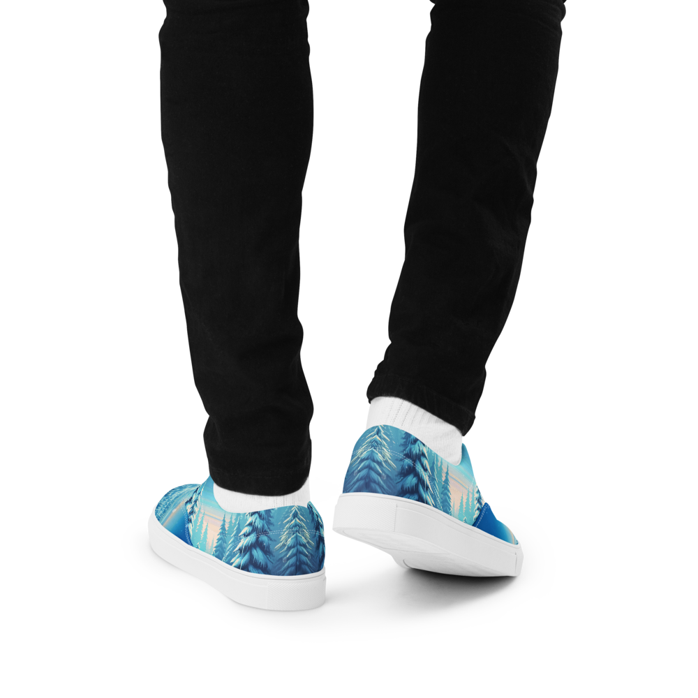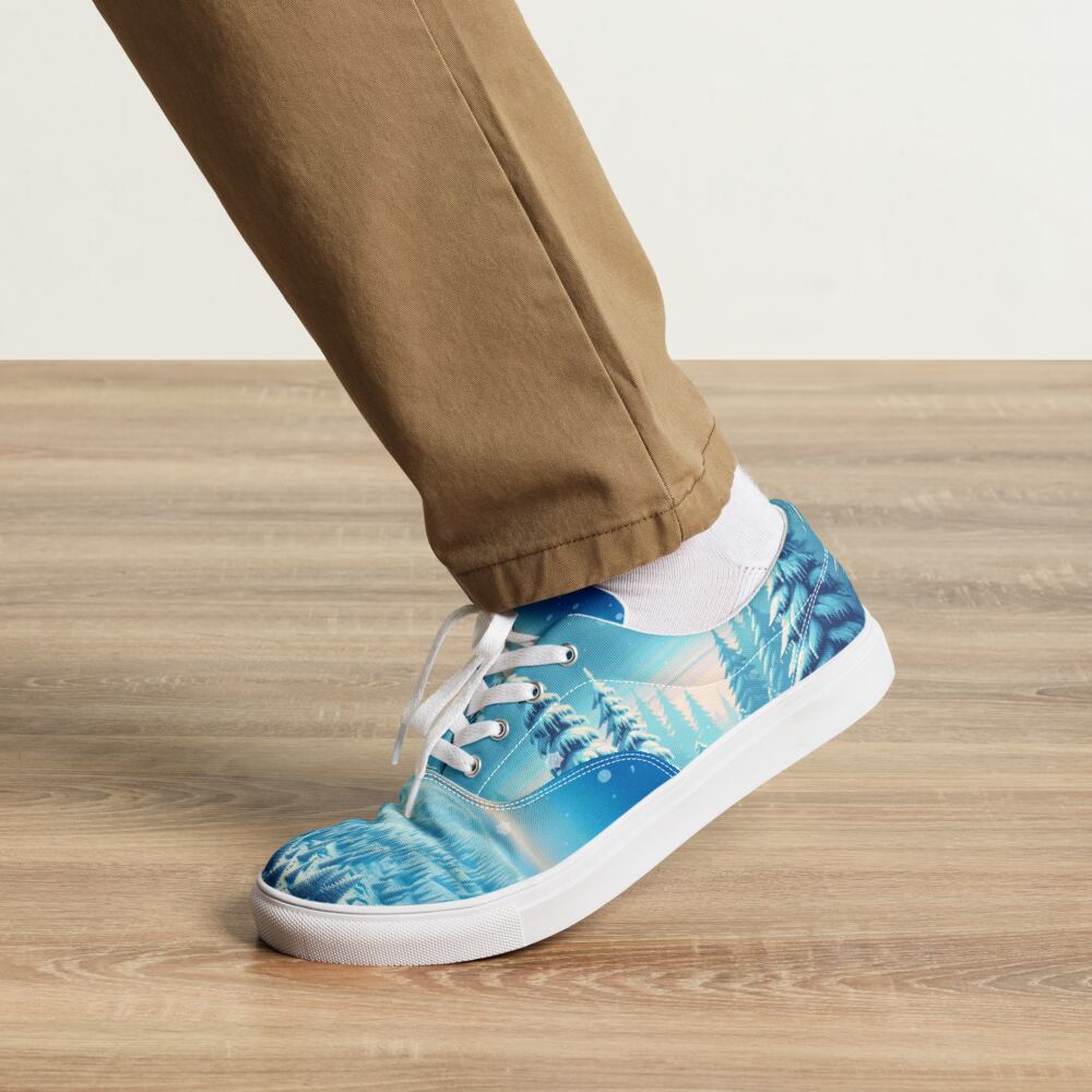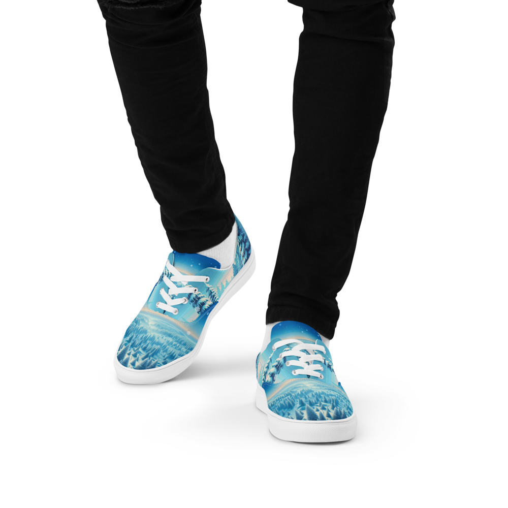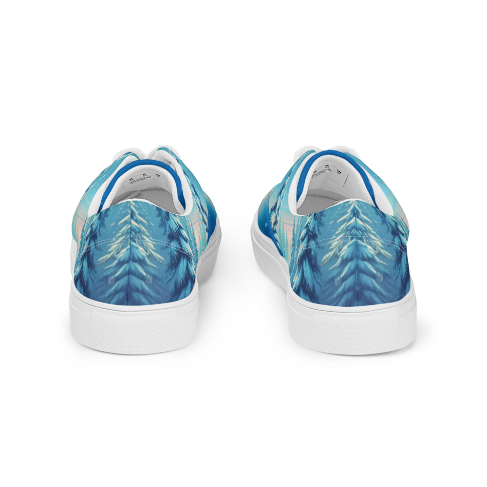 このシューズは、北欧の雪に覆われた森からインスピレーションを受け、雪の結晶と冬の森が織りなす幻想的な風景をあなたの足元に届けます。一面の雪原に佇む静寂な森をイメージしたデザインは、ライトブルーの基調に、雪の結晶が舞い散る様子を美しく表現しています。