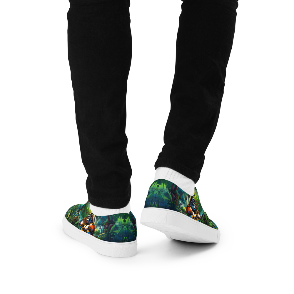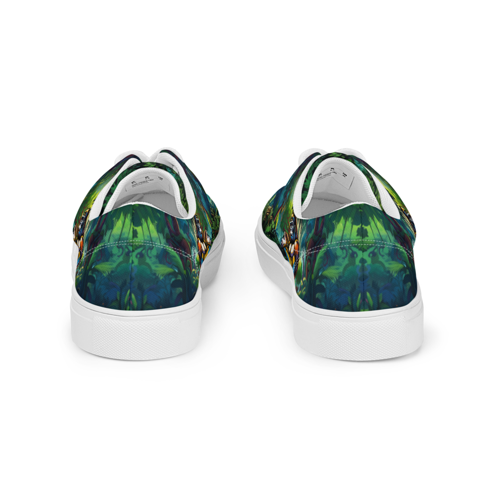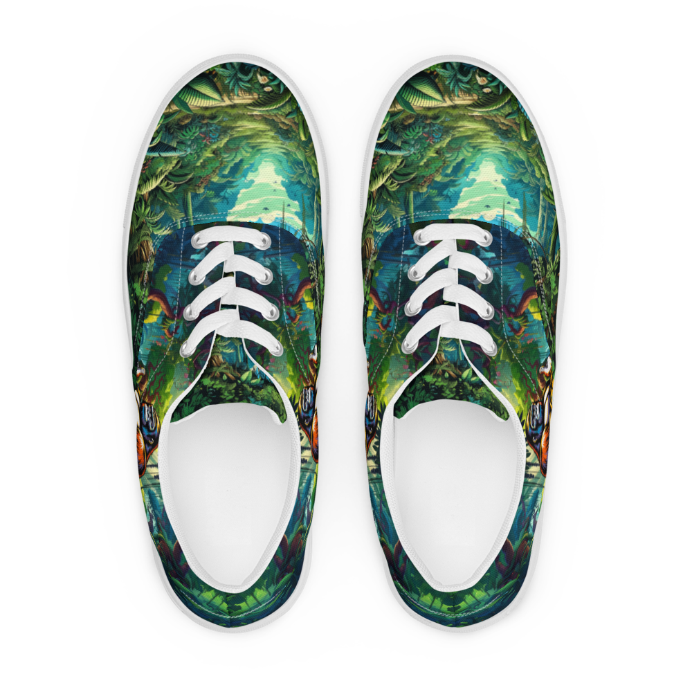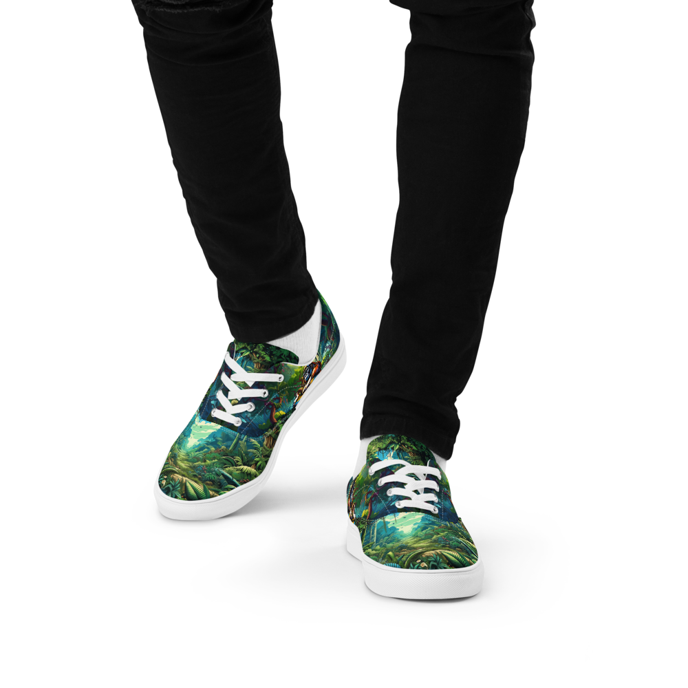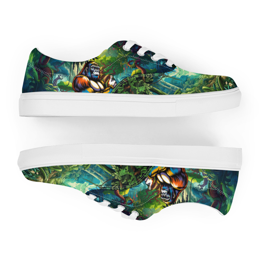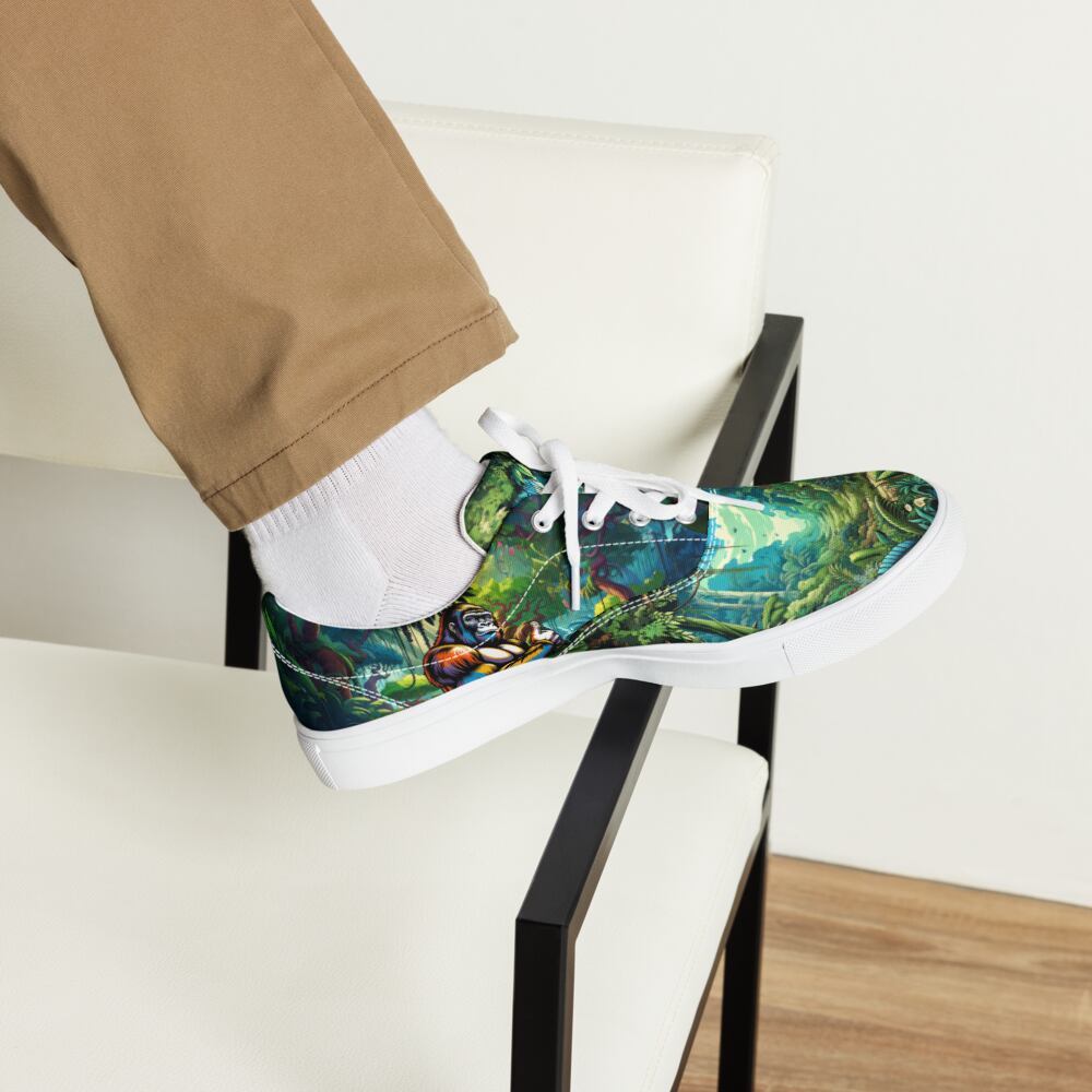 JUNGLEメンズレースアップシューズは、熱帯雨林の奥深い謎にインスパイアされたデザインで、冒険心を刺激します。豊かな緑と花々、そして力強いゴリラが描かれたこの一足は、ジャングルの生命力をあなたの日常にもたらします。